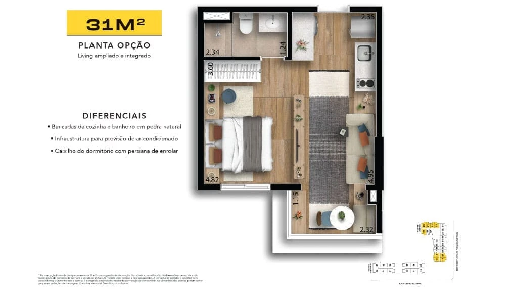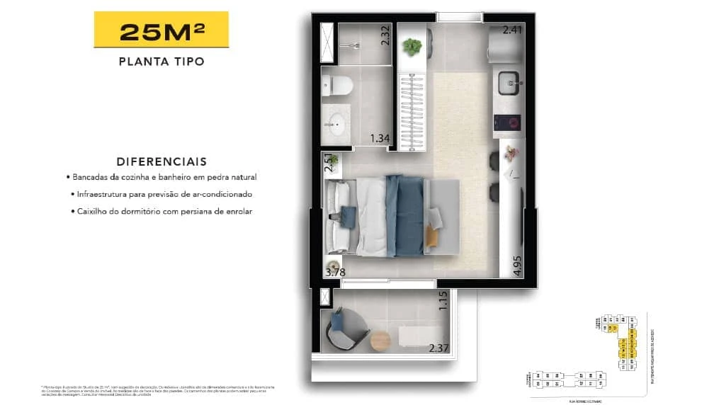22 unidades de 32,22 m² - 1 DORMITÓRIO